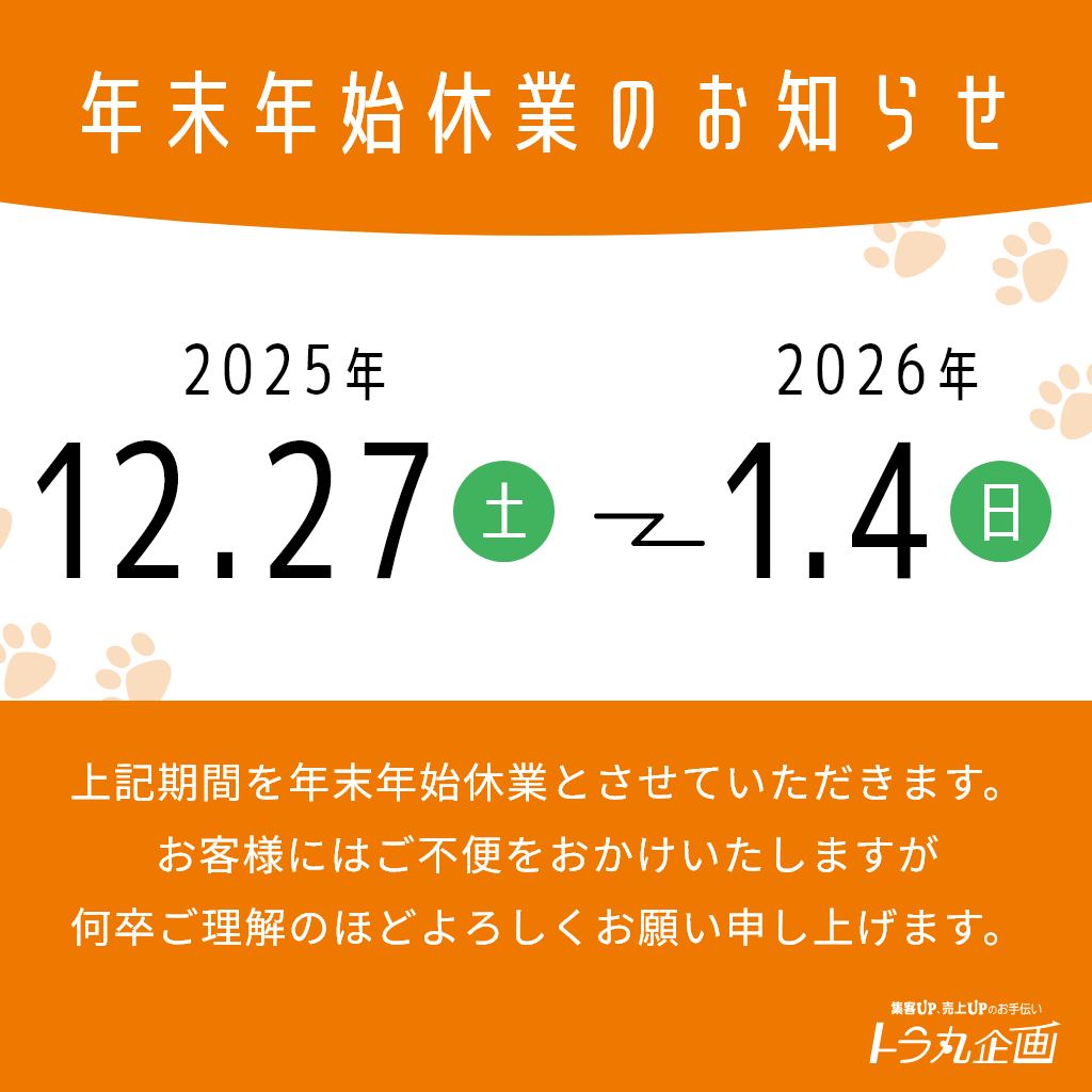 【休業期間】2025年12月27日(土)~ 2026年1月4日(日)