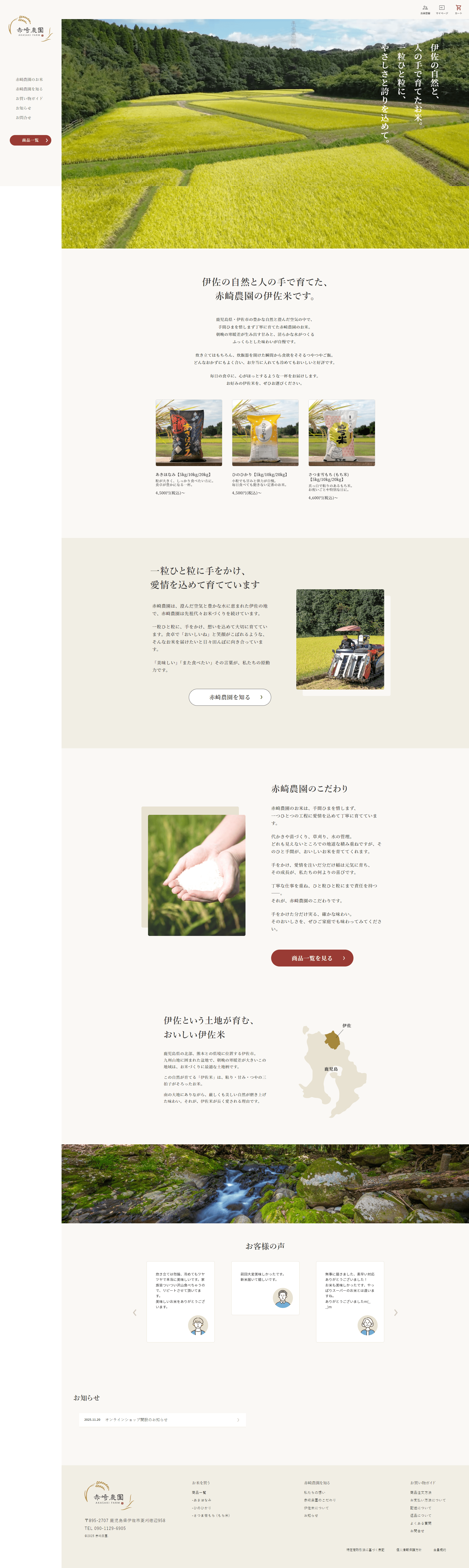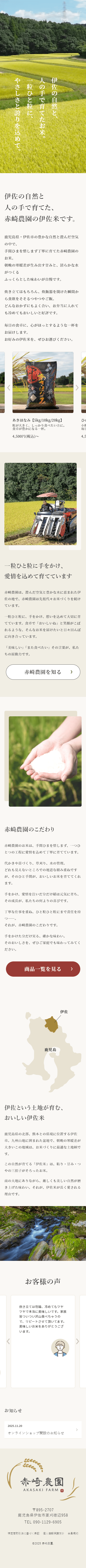 鹿児島県伊佐市にて代々米作りを続けてきた赤崎農園様の公式オンラインショップです。